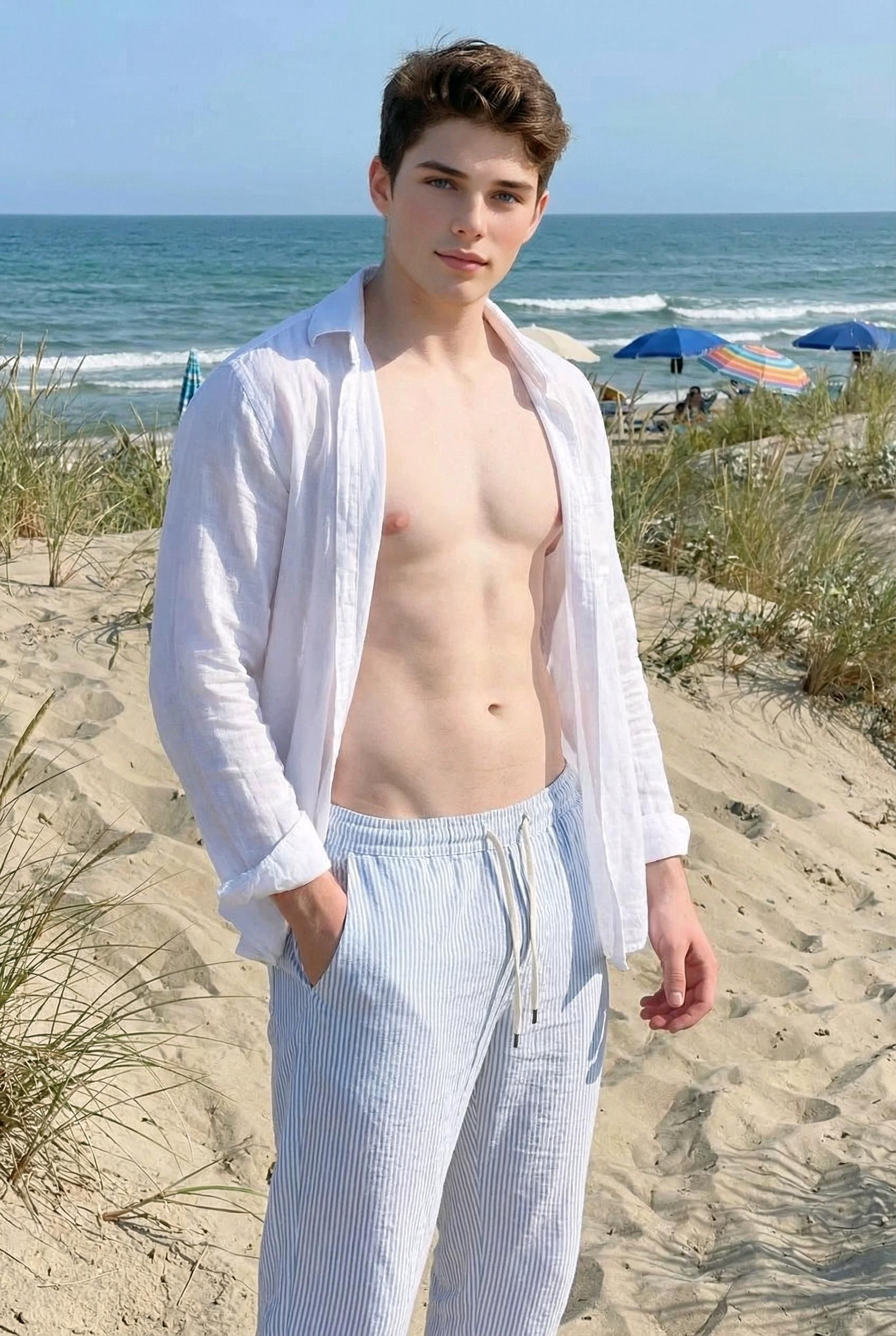 Yet nothing screams 'suck me off, Daddy' quite like his pair of pink areolae, which would melt in your mouth with just a kiss. You might not be the first person to make love to him, spread his pale buttocks and enter his pink assh*le, but you can absolutely be one of the first to see him fully nak*d.